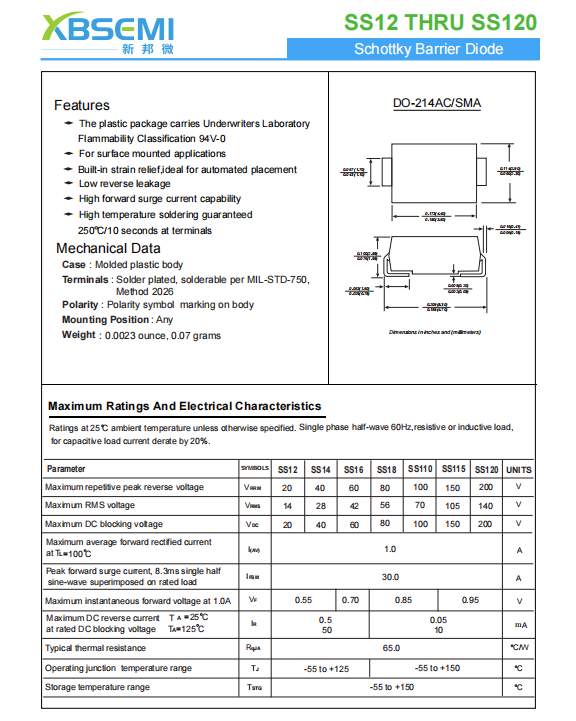 二、肖特基二極管SS16A產(chǎn)品參數(shù)